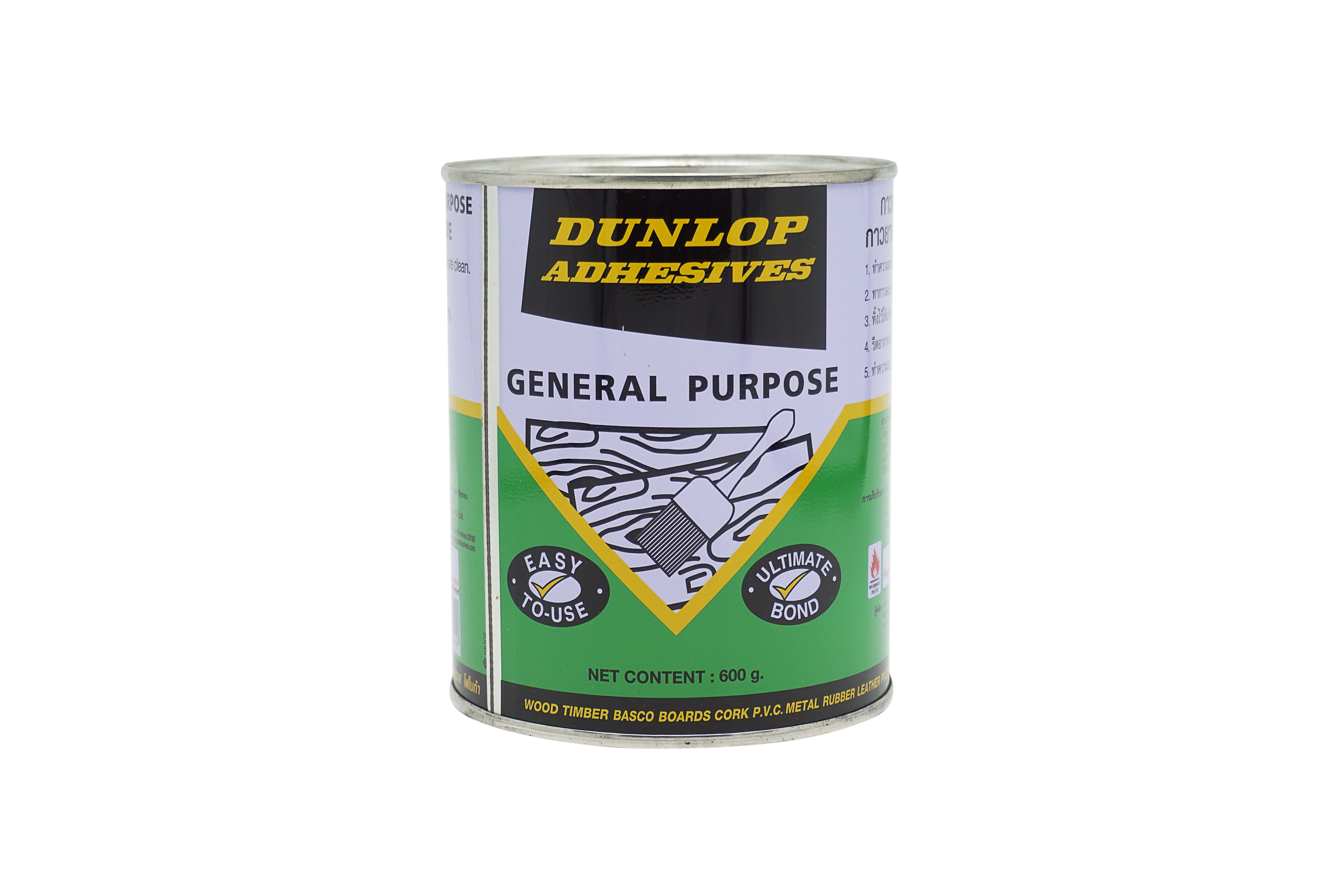 DUNLOP General Purpose Adhesive is for multipurpose application that forms strong bonds between such materials as wood, cork, concrete, rubber and leather