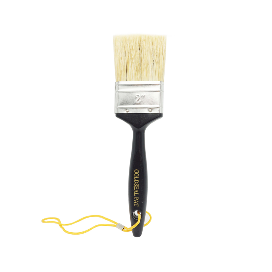 GOLDSEAL PAT Paint brush is made out of bristle offering high durability. Handle made from lightweight wood with fabric strap attached. Come with plastic cover.