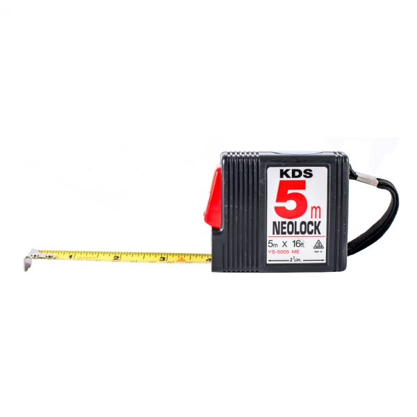 KDS Measuring tape is a must-have tool for every woodworking job. Blade type with a rounded plastic case. Come with a wrist strap. Very flexible and easy to carry around.