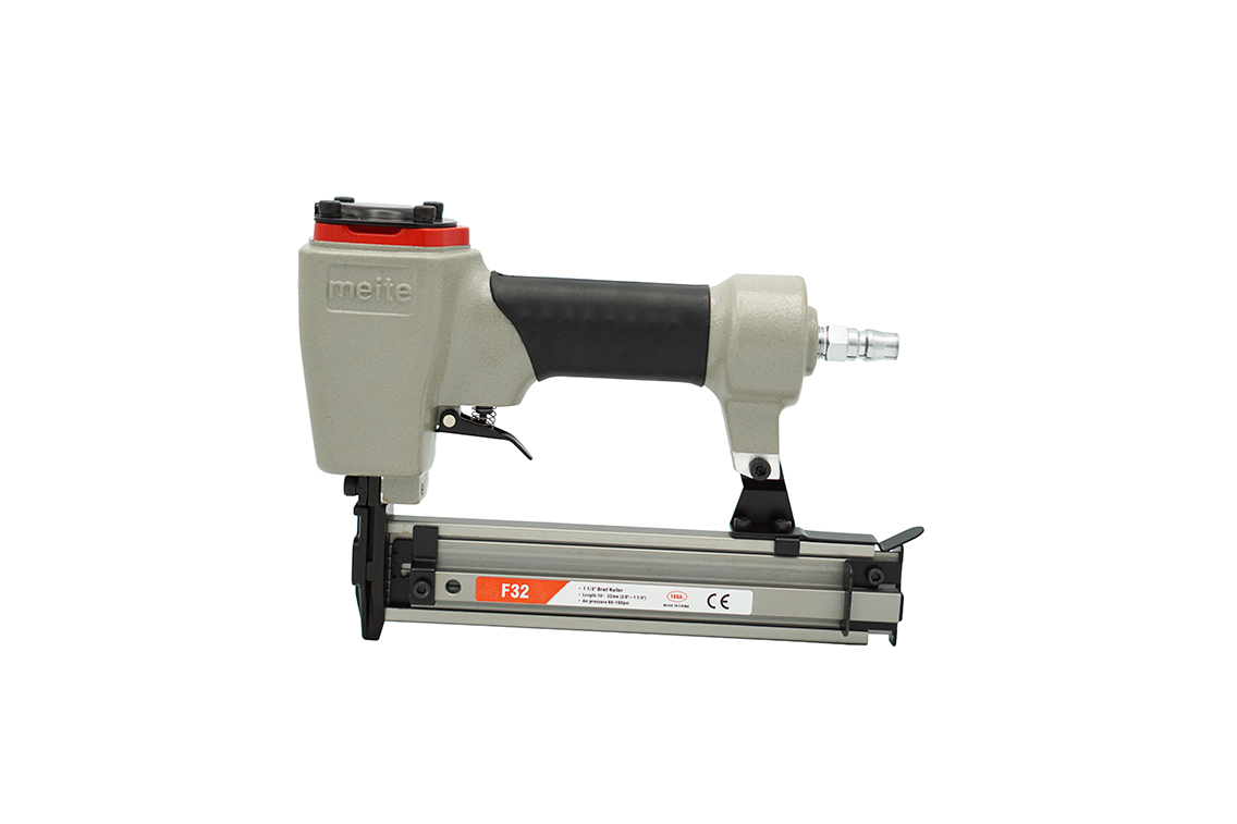 High quality brad nailer from MEITE, one of the largest manufacturer of pneumatic guns and staples in China. Robust and well-balanced body with a non-slip rubber grip. Designed to be used for furniture-making, upholstery, interior decoration, cabinet, etc. Compatible with F35 nail series.