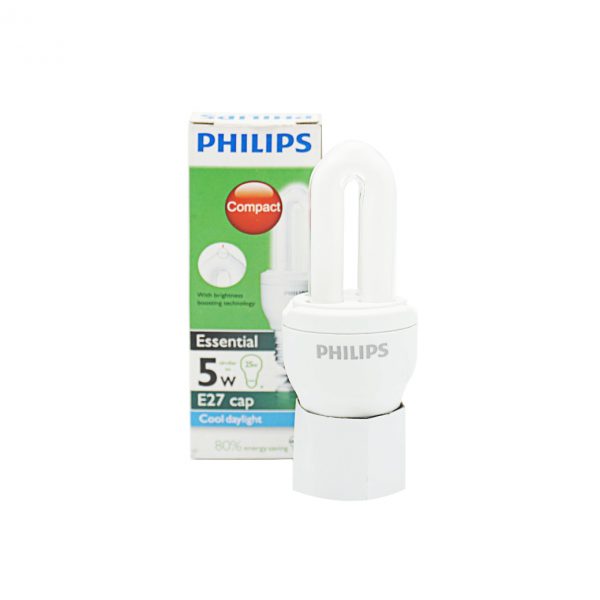 A PHILIPS compact fluorescent light bulb offers cool daylight atmosphere. U-shaped modern design with up to 80% energy saving and long-lasting light. Suitable for interior use.