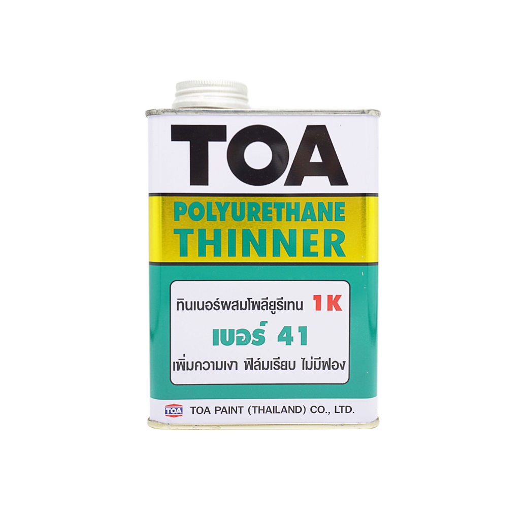 TOA Polyurethane thinner 1K no.41 is formulated from mixed organic solvents. It’s suitable for thinning with Polyurethane 1K. Paint film becomes easy to apply. Smooth and high gloss. Highly adhesives. Lead and mercury-free.