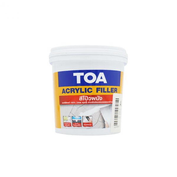 ทีโอเอ อะคริลิก ฟิลเลอร์ เป็นอะคริลิกสำเร็จรูปสำหรับอุดโป๊วรอยแตกรายงา รอยแตกร้าวเล็กๆของผนังปูนฉาบ รอยหัวตะปู รอยต่อแผ่นยิปซั่ม ผนังสำเร็จรูป ยึดเกาะได้ดีกับวัสดุหลายประเภท เช่น คอนกรีต ยิปซั่ม ปูนฉาบ ไม้ ใช้ได้ทั้งภายในและภายนอกอาคาร