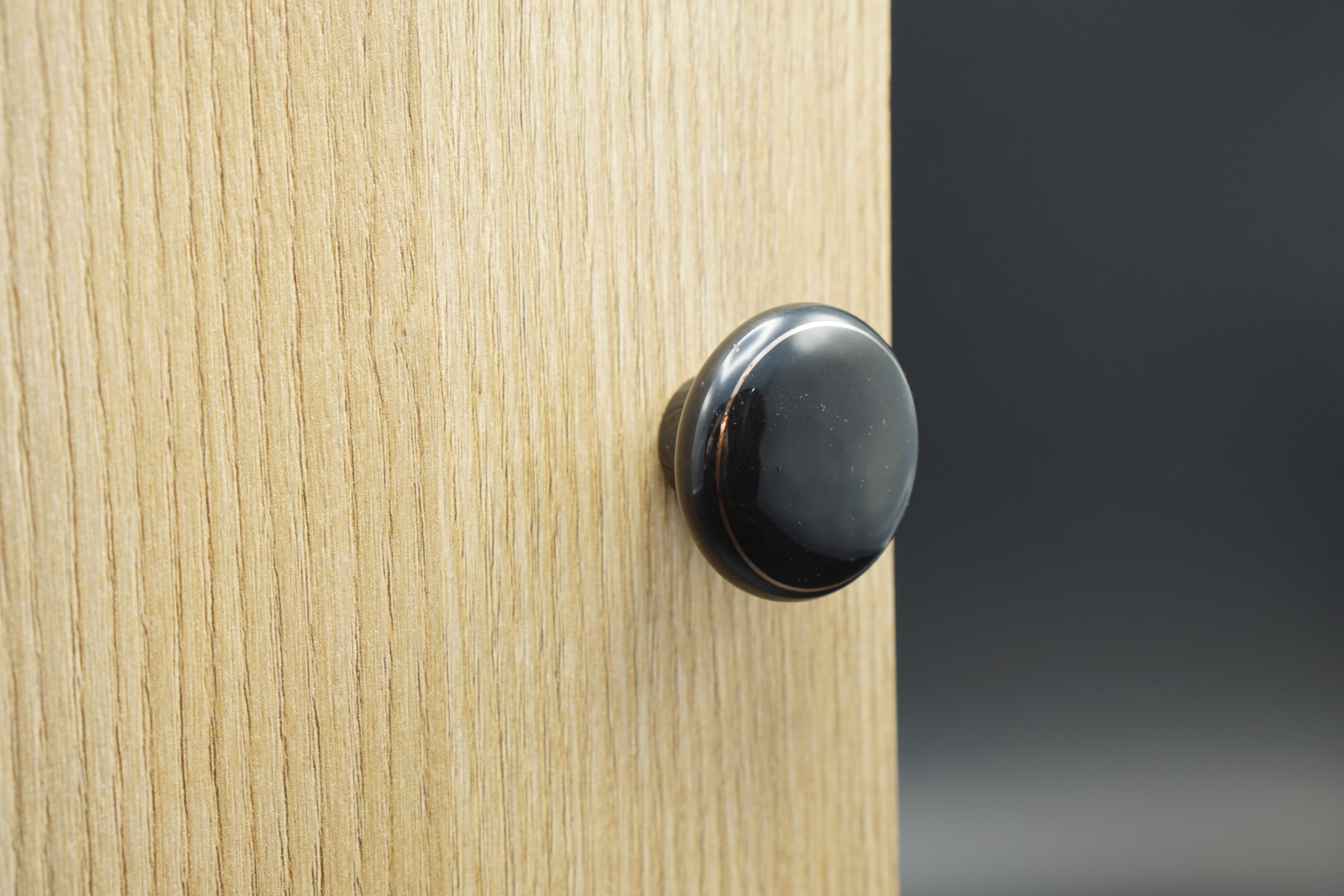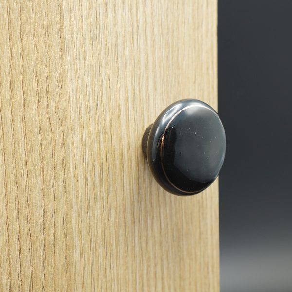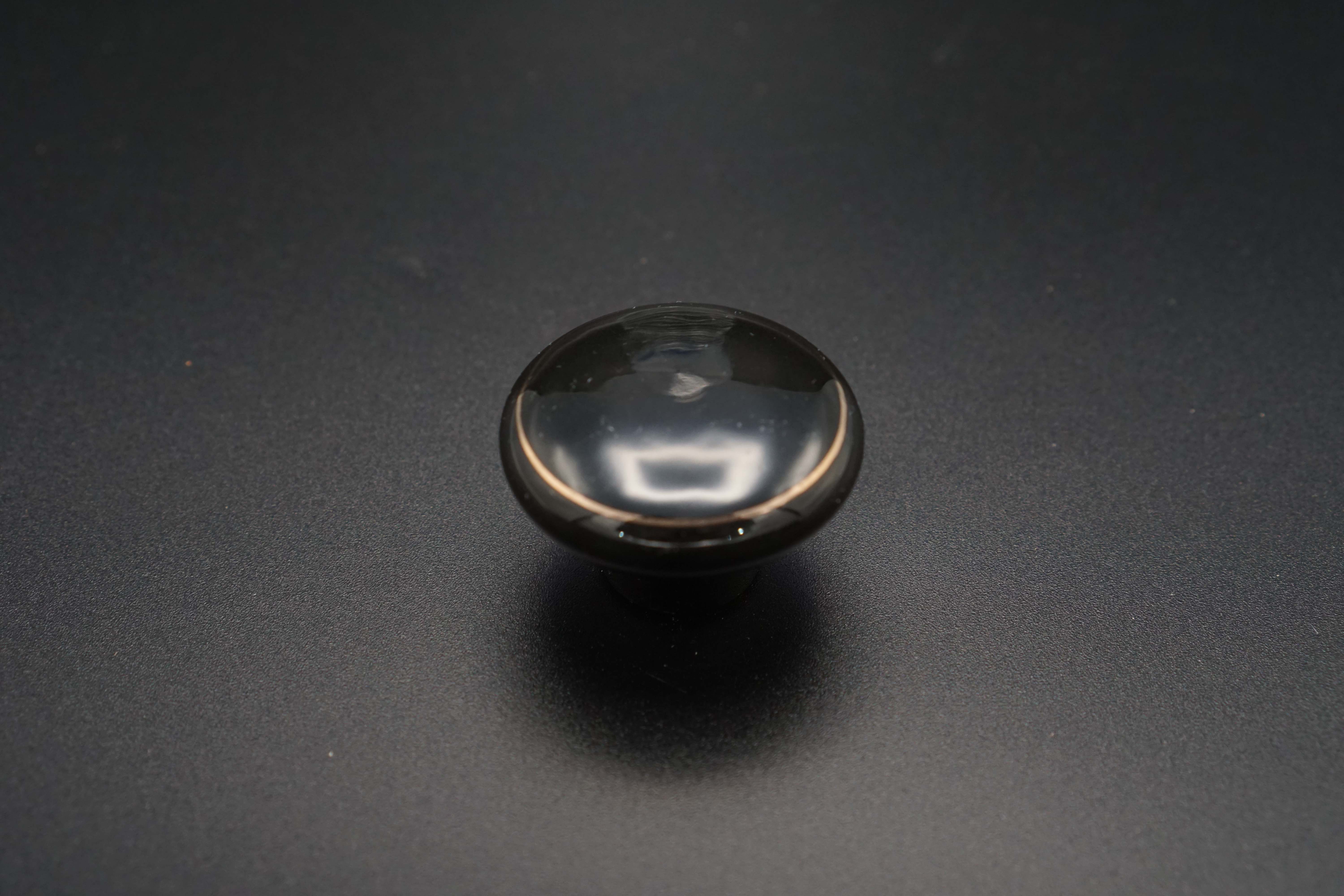 ปุ่มจับเซรามิค พื้นดำเงา ขอบวงสีทอง เหมาะสำหรับติดตั้งกับตู้และลิ้นชัก